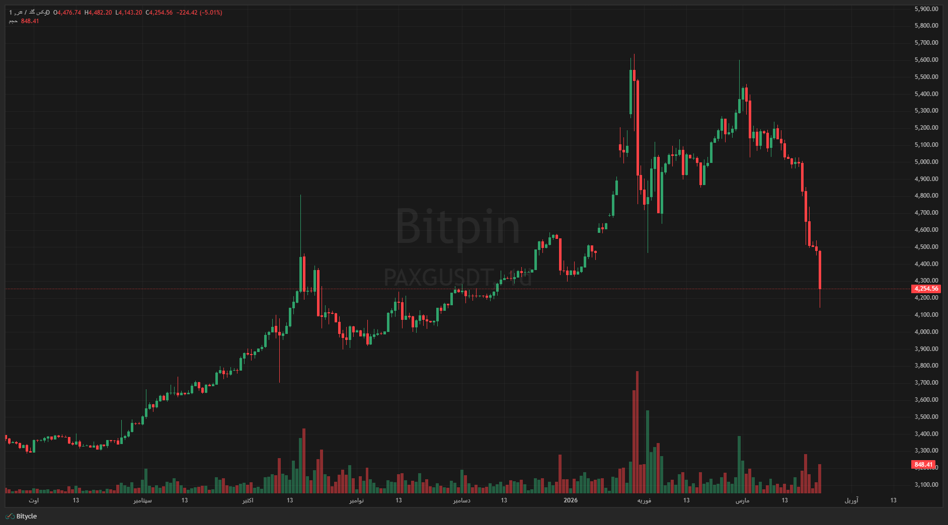 برای مثال، علیرغم سقوط سنگین در مارس، سرمایهگذاری ۱٬۰۰۰ دلاری در ابتدای سال ۲۰۲۶ هنوز در زمان نگارش این مطلب ۹۸۲ دلار ارزش دارد. همچنین خرید طلا به همین میزان در ۱۲ ماه پیش، اکنون ۱٬۳۹۶٫۲۰ دلار ارزش خواهد داشت. بنابراین، موفقیت این کالا ممکن است آن را مستعد اصلاح قیمتی کرده باشد. از طرفی سرعت رشد آن به این معناست که حتی پس از افت ۲۱٫۶۱ درصدی در سه هفته اخیر، هنوز فرصت خرید ارزندهای که بتواند به روند نزولی پایان دهد، ایجاد نشده است.