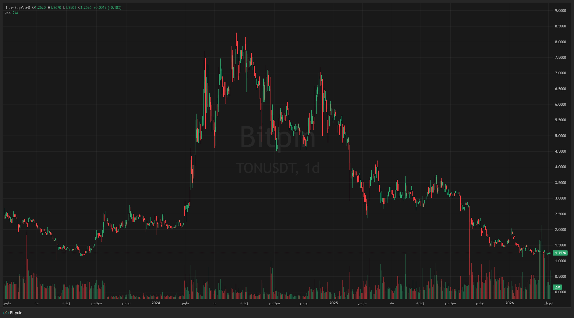 قیمت تون کوین حوالی ۱.۲۵۴ دلار معامله میشود و از اوایل فوریه داخل یک کانال نزولی گیر کرده. رویداد مهم این هفته، ارتقای نهایی شبکه در ۷ آوریل است که قرار است اجماع سریع را روی بیسچین و مسترچین فعال کند. ترجمه عملی این ارتقا: زمان نهایی شدن تراکنشها به کمتر از یک ثانیه میرسد. برای اکوسیستمی که روی مینیاپهای تلگرام، پرداختها و تراکنشهای پرتعداد حساب باز کرده، این تغییر میتواند تحولآفرین باشد.