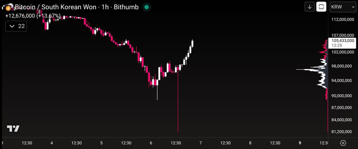 - ریزش شدید قیمت: جفتارز BTC/KRW (بیت کوین به وون کره) با سقوط آزاد مواجه شد، زیرا حجم فروشندگان بسیار بیشتر از خریداران واقعی بود.