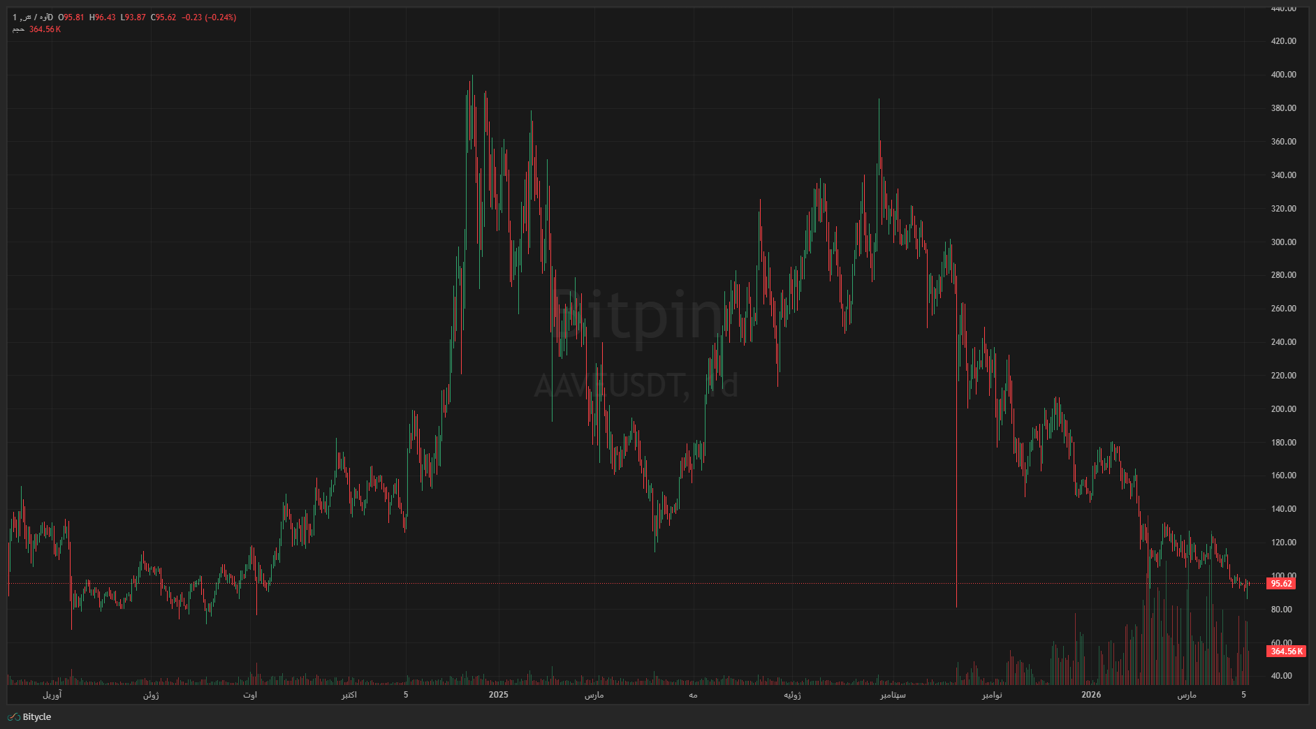 آوه (AAVE) دیگر به اندازه چند ماه پیش پایدار به نظر نمیرسد و این موضوع بهوضوح در قیمت این توکن مشخص است. قیمت آوه به زیر ۹۰ دلار سقوط کرده و به سطوحی رسیده که از اواسط ۲۰۲۴ (تابستان ۱۴۰۳) ندیده بودیم.