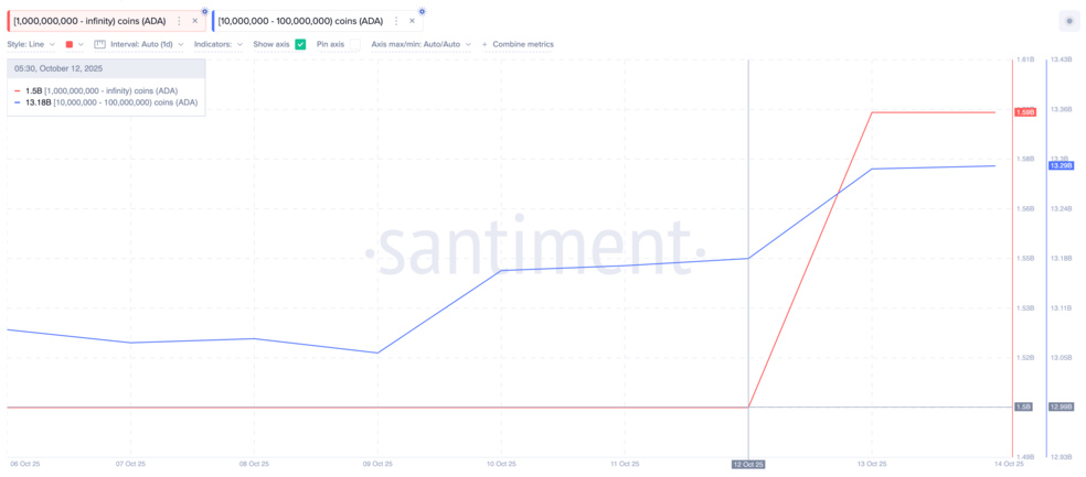 شاخص دوم، افزایش نرخ انباشت در میان هولدرهای بزرگ است. بررسی داده‌های کیف پول‌ها نشان می‌دهد تعداد آدرس‌هایی که بیش از 10 میلیون آدا در اختیار دارند، در هفته گذشته به طور چشمگیری افزایش یافته است. این امر معمولاً نشانه‌ای از اعتماد سرمایه‌گذاران بلندمدت و انتظار آن‌ها برای حرکت صعودی است.