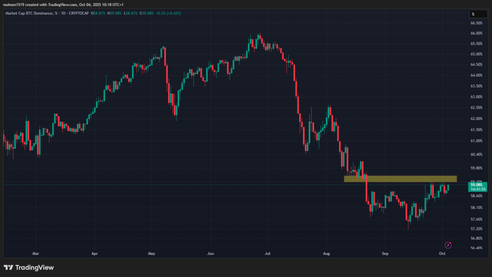 در هر دو حالت، این نقطه تصمیم میتواند مسیر سهماهه پایانی سال را تعیین کند. بسیاری از معاملهگران و تحلیلگران تکنیکال در حال رصد دقیق نمودار دامیننس بیت کوین هستند، زیرا واکنش بازار در این محدوده، نقش کلیدی در توزیع نقدینگی بین بیت کوین و آلت کوینها خواهد داشت.
