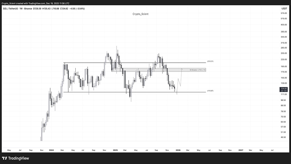 در مقابل، کریپتو ساینت (Crypto Scient) با تأکید بر اهمیت «زمینه بازار» میگوید سولانا اکنون در کف یک محدوده چندساله معامله میشود و معمولاً چنین سطوحی در اولین برخورد شکسته نمیشوند. به باور او، هنوز نقدینگی قابلتوجهی در محدوده ۱۷۵ تا ۱۹۰ دلار وجود دارد که ممکن است پیش از هر ریزش عمیقتری جذب شود.