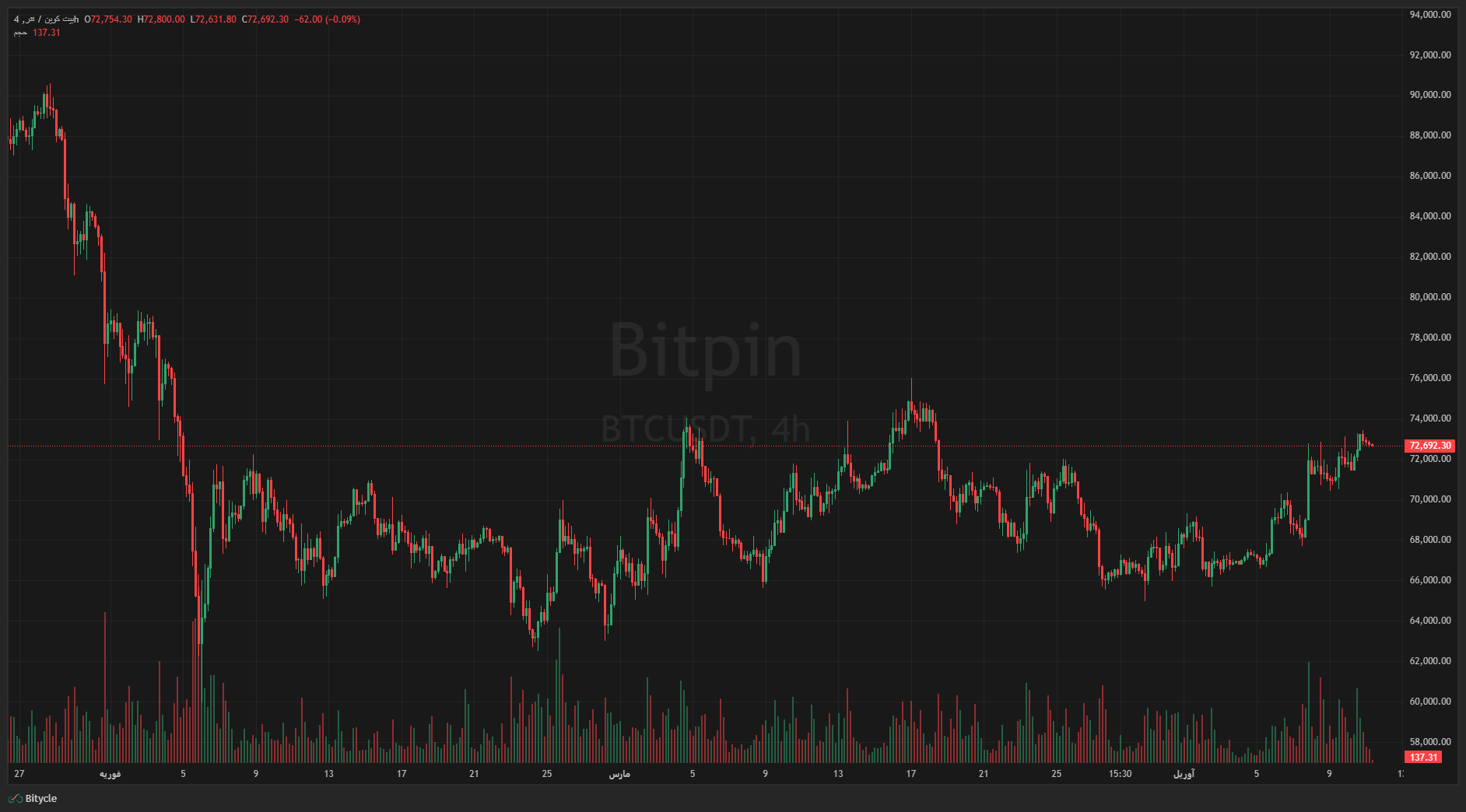 «اگر کندلها همچنان زیر ۷۱٬۰۰۰ دلار بسته شوند؛ این سطح دیگری است که در نظر دارم اما اهمیت کمتری دارد؛ در آن صورت هیچ چیز واقعاً تغییر نکرده است. اما لحظهای که قیمت شروع به نزدیک شدن به ۸۲٬۰۰۰ دلار کند و در آن محدوده بسته شود، انتظار دارم که صعود ادامه پیدا کند.»