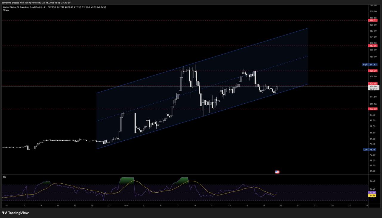 اگر قیمت بالای ۱۲۰ دلار تثبیت بدهد (ترجیحا با چند کندل ۴ ساعته و حفظ کفهای بالاتر)، میتوان انتظار داشت اهداف بالاتر فعال شوند: