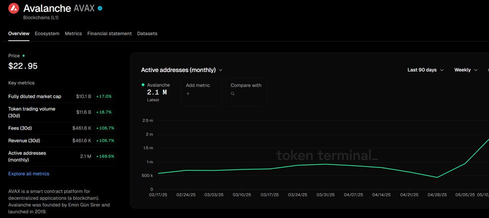 در سال ۲۰۲۵ تا کنون، آوالانچ مسیر پایدارتری را تجربه کرده است. انتشار بهروزرسانیهای شبکه Coreth و بهبود پروتکلهای امنیتی میانگین زمان تأیید تراکنشها را به زیر ۰.۵ ثانیه کاهش داد. قیمت AVAX از حدود ۳۰ دلار در ابتدای سال به حدود ۴۴ دلار در اوایل فروردین ۱۴۰۴ افزایش یافت که نشاندهنده اعتماد افزایشی سرمایهگذاران است. رشد پروژههای GameFi و NFT در شبکه آوالانچ و راهاندازی زیرساختهای لایه دوم، فعالیت در زنجیره C را بهشدت افزایش داد. همچنین پذیرش نهادی AVAX و معرفی صندوقهای ETF مبتنی بر این رمزارز در برخی بازارهای بینالمللی، چشمانداز بلندمدت آن را مستحکم کرده است.