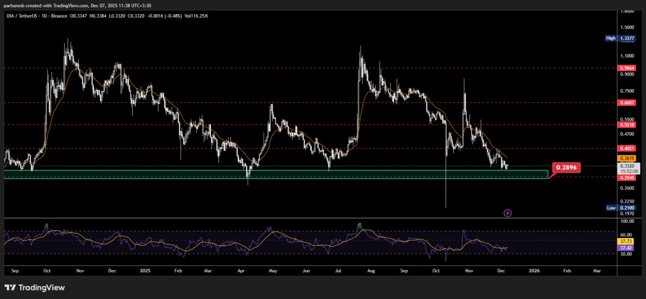 خود ماهیت ارزهای AI نوسانی و پرریسک است. از نظر تکنیکال، DIA به دلیل سابقه واکنشهای قوی در ۰.۲۸ دلار وضعیت مطمئنتری نسبت به دو مورد دیگر دارد، اما این بهمعنی قطعیت نیست. - بهترین نقطه برای ورود کجاست؟