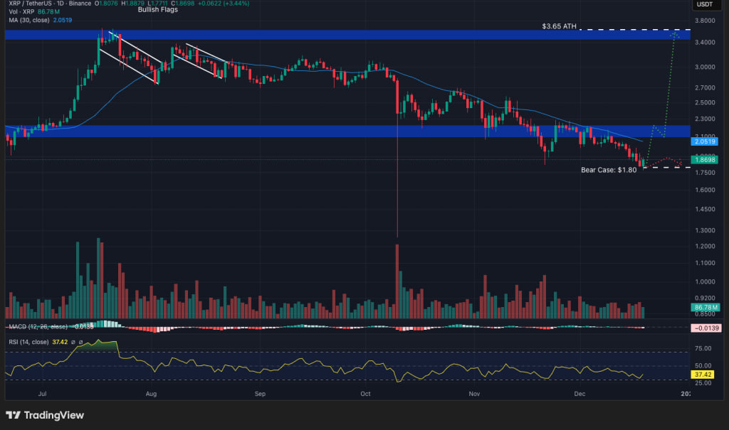پس از پایان دعوای حقوقی طولانیمدت ریپل با کمیسیون بورس و اوراق بهادار آمریکا (SEC)، قیمت ریپل موفق شد برای نخستین بار در هفت سال گذشته به سقف تاریخی جدیدی برسد و تا ۳.۶۵ دلار اوج بگیرد. از آن زمان تاکنون، قیمت حدود ۴۹ درصد اصلاح کرده و اکنون نزدیک ۱.۸۷ دلار معامله میشود.