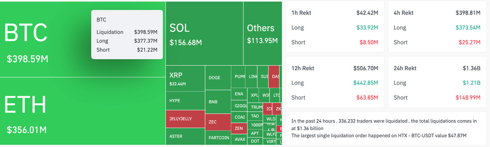 کارشناسان میگویند این فشار فروش نتیجهی مستقیم تعداد بیش از حد موقعیتهای پرریسک و رفتار هیجانی سرمایهگذاران است. صرافی HTX بزرگترین لیکوئید شدن را ثبت کرد – موقعیتی ۴۷ میلیون دلاری که تنها در چند دقیقه بسته شد.