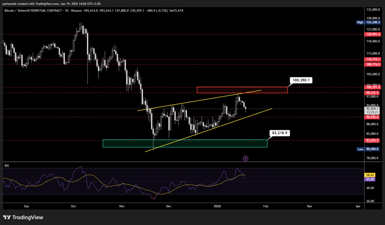 در حال حاضر، محدودهی ۹۰٬۲۰۰ دلار بهعنوان حمایت استاتیک کوتاهمدت برای بیت کوین عمل میکند و حفظ این سطح میتواند نقش مهمی در ادامهی سناریوی صعودی داشته باشد. از سوی دیگر، ناحیهی مشخصشده با باکس قرمز رنگ در محدودهی ۹۸٬۰۰۰ تا ۱۰۰٬۰۰۰ دلار بهعنوان یک مقاومت بسیار مهم در تایم روزانه شناخته میشود و میتواند مانعی جدی در مسیر رشد قیمت باشد.