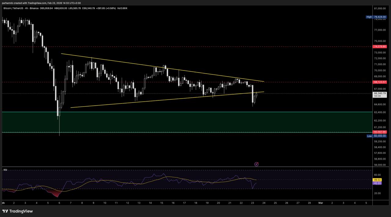 تحلیل قیمت بیت کوین | نمودار ۴ ساعته BTC/USDT