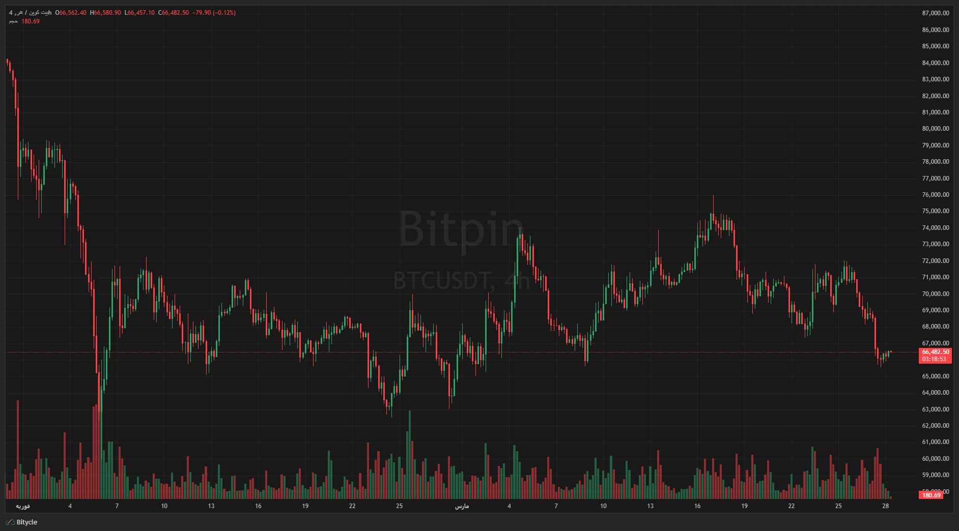 روز جمعه، بیت کوین در معاملات روزانه بیش از ۷ درصد سقوط کرد و به کف سههفتهای ۶۵٬۷۰۰ دلار رسید. این افت نگرانیهایی درباره عملکرد کوتاهمدت تا میانمدت این ارز دیجیتال پیشرو ایجاد کرده است. این رمزارز از زمان سقوط اوایل فوریه (اواسط بهمن) در محدوده ۶۵٬۰۰۰ تا ۷۲٬۰۰۰ دلار معامله میشود.