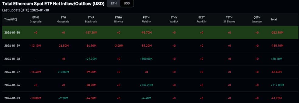 این اقدام پس از آن صورت گرفت که خروجی اتریوم در انتهای هفته شدت گرفت؛ ETHA در ۳۰ ژانویه (دی/بهمن) حدود ۱۵۷ میلیون دلار خروج سرمایه را ثبت کرد، آن هم پس از اینکه یک روز قبل نزدیک به ۵۵ میلیون دلار دیگر از این صندوق خارج شده بود. هرچند ۲۸ ژانویه (دی/بهمن) برای مدت کوتاهی ۲۷ میلیون دلار ورود سرمایه دیده شد، اما برای تغییر روند کلی کافی نبود.