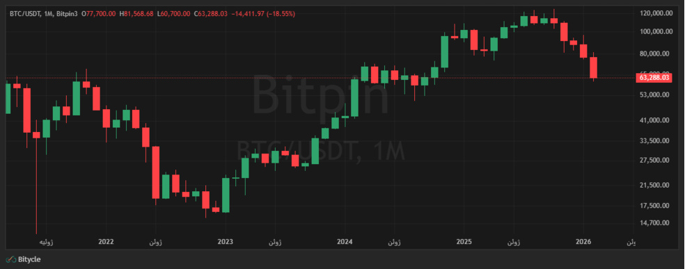 نمودار ماهانه قیمت بیت کوین | منبع: بیت‌پین