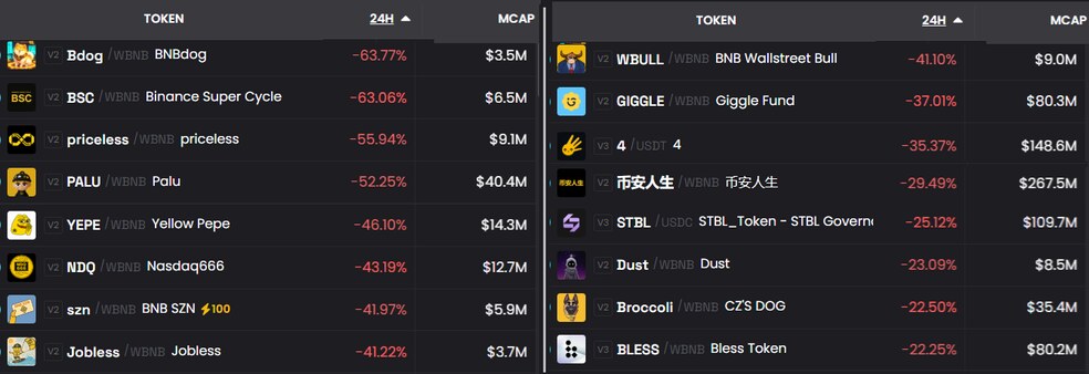 با این حال، بازار نسبت به این رونمایی واکنش منفی نشان داد. معامله‌گران با نگرانی درباره تمرکز زیاد دارایی‌ها در کیف پول‌های بزرگ (نهنگ‌ها)، نقدشوندگی پایین و حجم‌های معاملات غیرواقعی، دارایی‌های خود را فروختند. تعداد قابل‌توجهی از میم کوین‌ها مانند PALU، GIGGLE، Binance Life و 4 در این ریزش سهم بزرگی داشتند. در برخی موارد گزارش شده که یک کیف پول کنترل بی‌سابقه‌ای بر توکن داشت – مثلاً ۳۹٪ از عرضه PALU در اختیار یک کیف خاص بوده است. این موضوع، نگرانی‌ها درباره دستکاری بازار را افزایش می‌دهد.