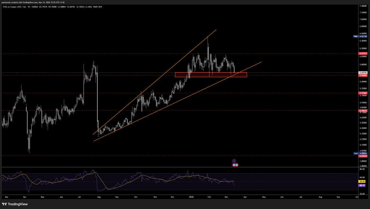 حفظ حمایت: در صورتی که تقاضا در محدودهی ۵.۵ دلاری تقویت شود و خریداران از این سطح دفاع کنند، انتظار میرود اصلاح پایان یافته و قیمت مس مجدداً به مدار صعودی بازگردد تا برای اهداف بالاتر و شکست سقف قبلی خیز بردارد. - سناریوی ریزشی: