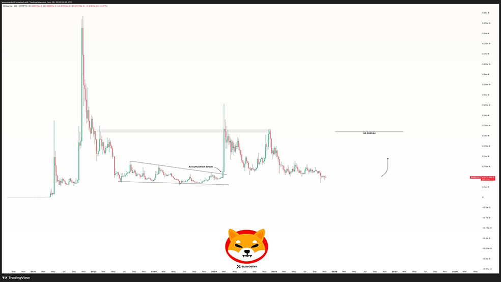 بر اساس تحلیل جاوون مارکس (Javon Marks)، شیبا اینو (SHIB) پس از یک دوره طولانی انباشت، احتمالاً وارد فاز صعودی جدیدی شده است.
