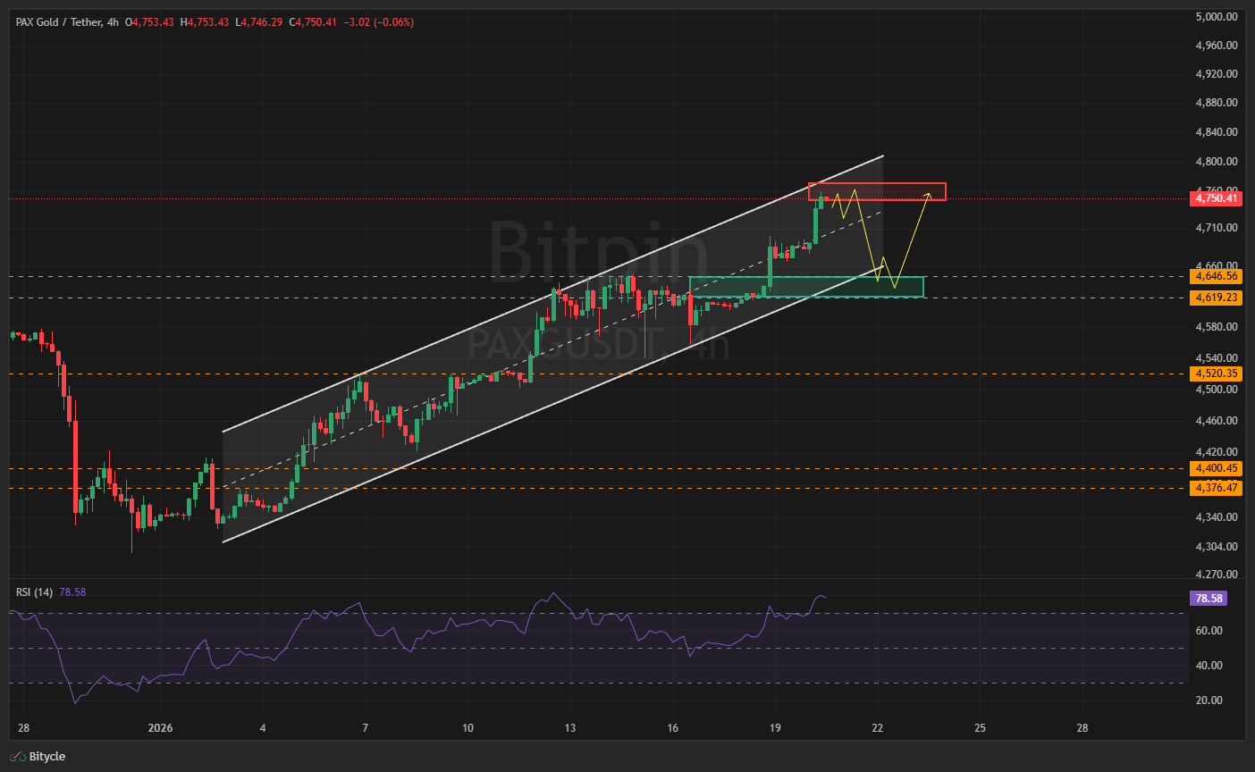 طلا در حال حاضر در ساختار صعودی قدرتمند، درون کانالی صعودی قرار دارد. پس از ثبت سقف جدید در ناحیه ۴٬۷۳۷ دلاری، قیمت اکنون وارد فاز پولبک سالم شده است که این امر طبیعی و مورد انتظار است.