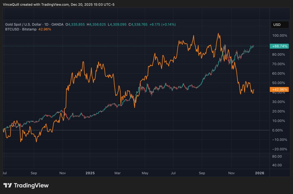 در حالی که طلا در سال ۲۰۲۵ تا بالای ۴,۰۰۰ دلار صعود گرد و دوباره به مرکز توجه بازارهای سنتی تبدیل شده، متیو کراتر، مدرس و تحلیلگر بازار و از حامیان سرسخت بیت کوین، هشدار داد که هولدرهای BTC نباید برای سوار شدن بر موج طلا، کوینهای خود را بفروشند. او در تحلیلی جدید خود گفت: