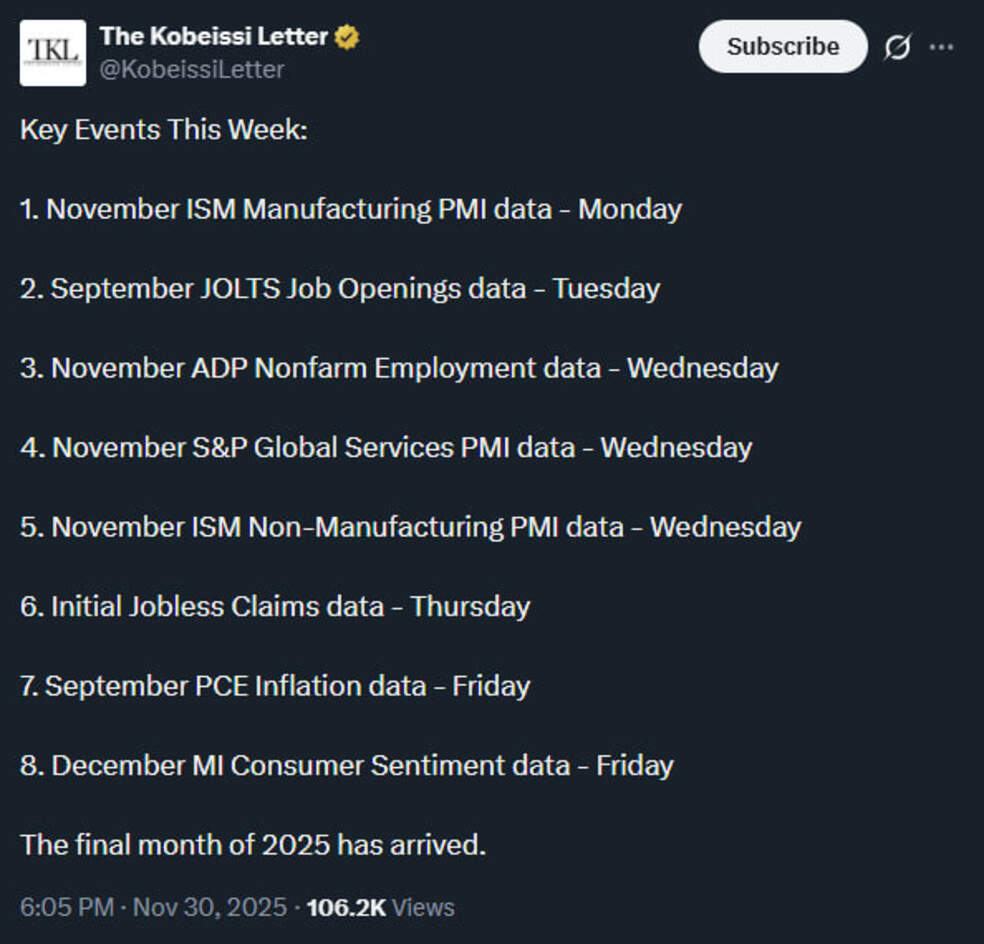 • تمرکز این هفته بر داده‌های کلیدی بازار کار (اشتغال غیرکشاورزی و بیکاری) و گزارش تورم PCE است که می‌تواند مسیر کاهش نرخ بهره را تثبیت کند.
