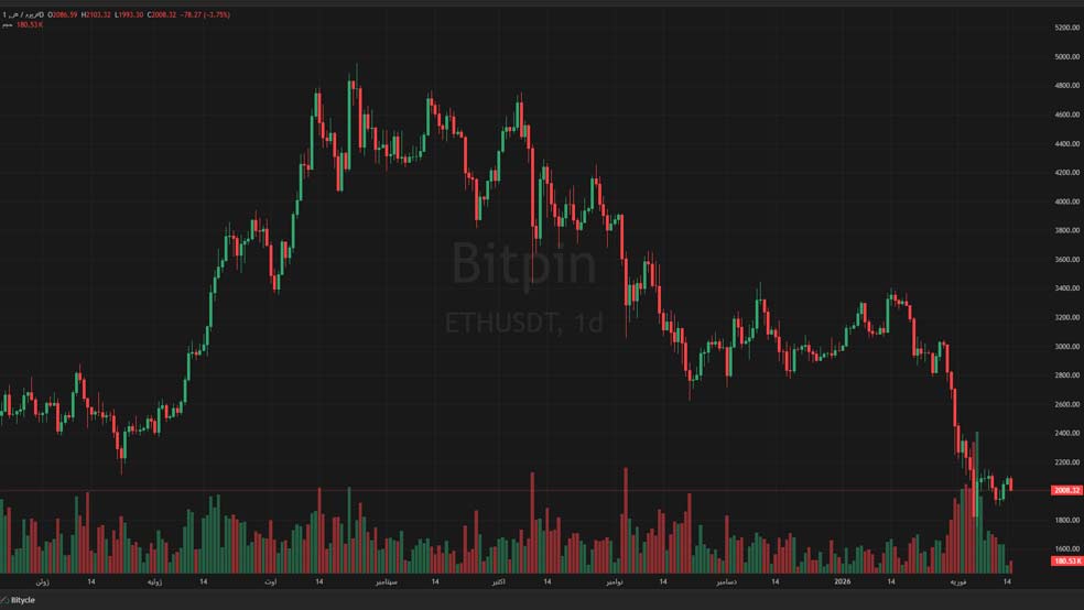 کریپتوآنچین در تحلیل خود اشاره کرده که این شاخص در حال حاضر در سطح ۰٫۹۷ قرار دارد. این عدد نشان میدهد که حرکت فعلی قیمت اتریوم بیشتر تحت تأثیر فشار فروش تهاجمی است. نکته قابل توجه این است که سطح ۰٫۹۷ پایینترین میزان از نوامبر (آبان) تاکنون محسوب میشود. به گفته این تحلیلگر، این دادهها نشاندهنده تغییر احساسات گستردهتر در میان معاملهگران فیوچرز اتریوم طی ماه گذشته است و صرفاً یک واکنش موقت به نوسانات قیمت نیست.