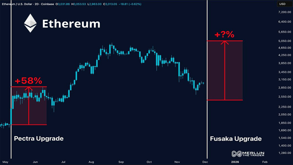 تحلیلگران یادآوری میکنند که ارتقای پکترا (Pectra) نیز در سال جاری منجر به جهش ۵۸ درصدی قیمت شد. این جهش نتیجه ترکیب بهبودهای فنی و بازگشت نقدینگی به بازار بود. طبق تحلیل مرلین د تریدر (Merlijn The Trader)، ارتقای فوساکا حتی میتواند اثر بزرگتری نسبت به پکترا داشته باشد، زیرا انتشار بلاکها را سریعتر کرده و مکانیسمهای کارمزد را هوشمندانهتر میکند.