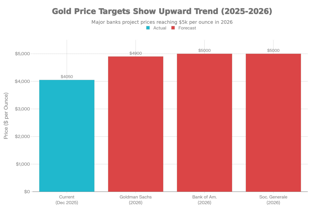 طلا در سال ۲۰۲۵ کاری کرد که خیلیها فکرش را نمیکردند. قیمت طلا از ۲۰۰۰ دلار عبور کرد و مستقیم به سمت ۴۵۵۰ دلار حرکت کرد. این یعنی بیش از ۱۱۰ درصد رشد در کمتر از دو سال! حالا سوال اینجاست: آیا این رشد تمام شده؟ بانکهای بزرگی مثل بانک آو آمریکا و گلدمن ساکس میگویند خیر. آنها پیشبینی میکنند طلا تا پایان سال ۲۰۲۶ به محدوده ۴۹۰۰ تا ۵۰۰۰ دلار برسد.
