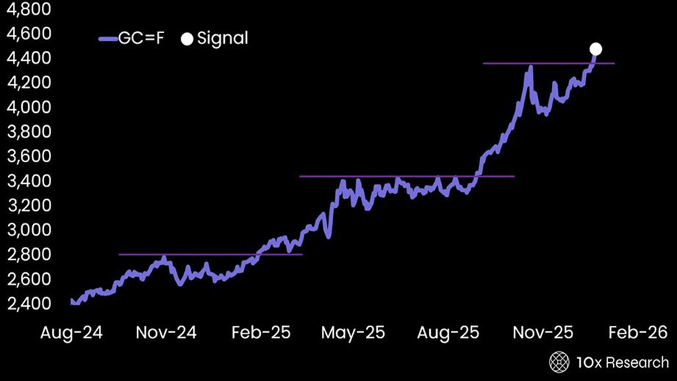 طلا بار دیگر رکورد تاریخی جدیدی ثبت کرده و بهگفته مؤسسه تنایکس ریسرچ (10x Research)، قیمتهای فعلی ممکن است ارزانترین سطوحی باشد که سرمایهگذاران در آینده نزدیک مشاهده میکنند. این در حالی است که قیمت بیت کوین همچنان در یک روند خنثی حرکت میکند و برخلاف داراییهای امن سنتی، در رالی پایان سال حضور پررنگی ندارد.