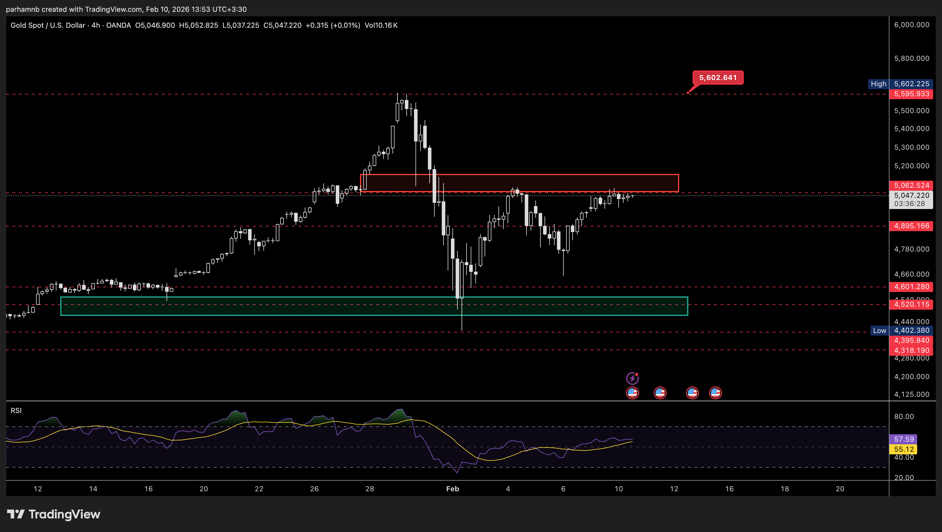 سناریوی پیش روی ما کاملاً شفاف است. کلید اصلی ماجرا در شکست محدوده ۵۰۵۰ دلار نهفته است. اگر خریداران بتوانند با تکیه بر اخبار مثبت و حجم پول ورودی، این مقاومت را بشکنند و قیمت را بالای آن تثبیت کنند، راه برای رسیدن به اهداف بالاتر هموار میشود. در این صورت، اولین هدف قیمتی، سقف قبلی در محدوده ۵۶۰۰ دلار خواهد بود.