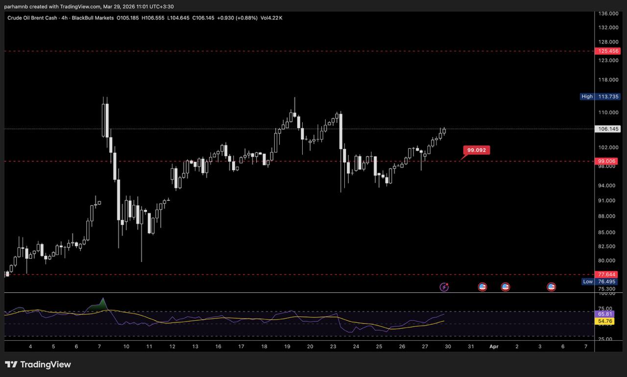 در این ساختار، تا زمانی که قیمت بالای ۹۹ دلار نوسان کند، سناریوی غالب میتواند تداوم حرکت صعودی باشد. همچنین همانطور که اشاره کردهاید، با تثبیت بالای این سطح، اهداف بالادستی میتواند تا محدوده ۱۲۵ دلار و حتی بالاتر فعال شود؛ مخصوصاً اگر همزمان، ریسکهای دریایی و امنیت انرژی تشدید شود و بازار وارد فاز «قیمتگذاری بدترین سناریوها» شود.