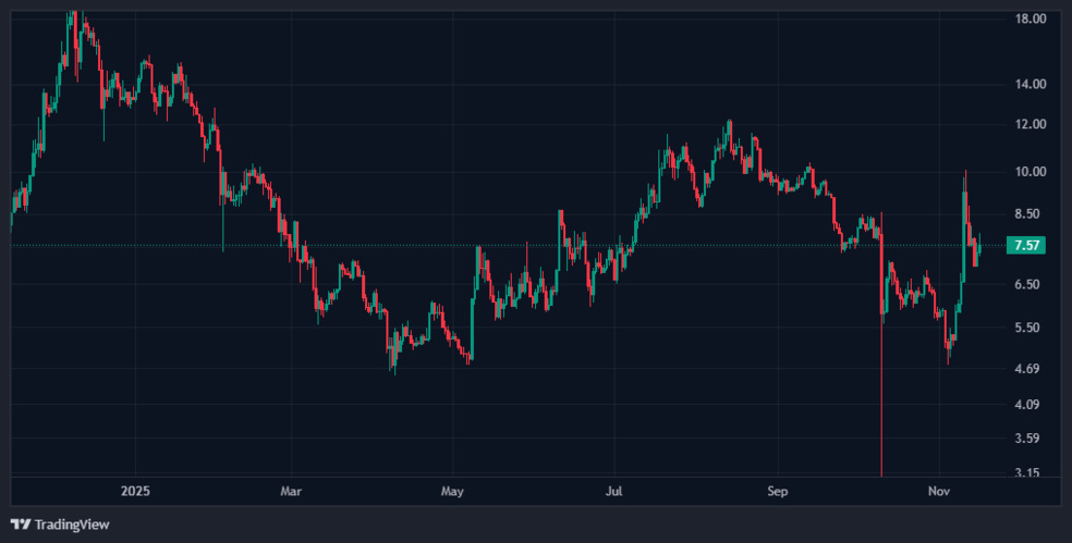 در مقابل، برخی تحلیلگران دیدگاه صعودیتری دارند. یکی از تحلیلگران شناختهشده بازار میگوید شکلگیری الگوی «کنج نزولی» در نمودار، احتمال رشد تا ۱۱ تا ۱۴ دلار را در صورت شکست الگو تقویت میکند، هرچند این سناریو نسبت به اهداف کوتاهمدت پرریسکتر است.