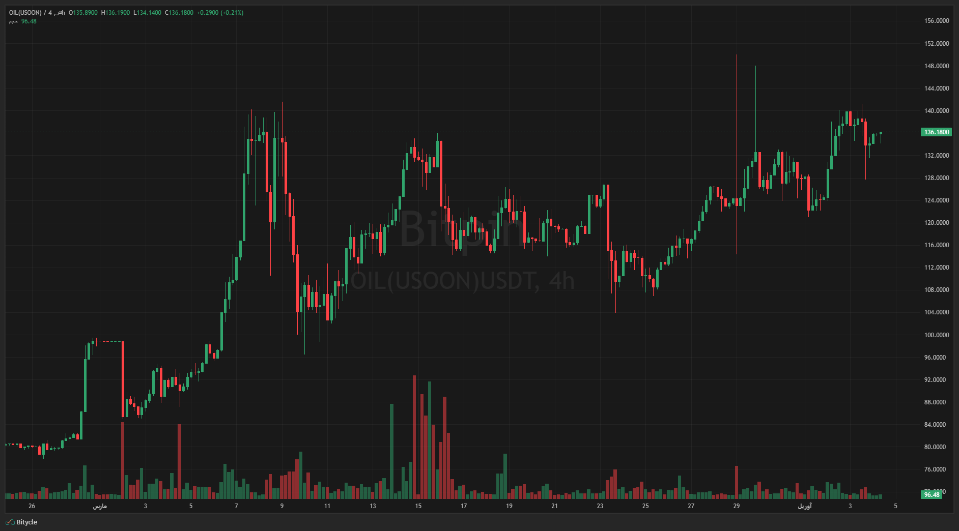 با حجم معاملات روزانه ۲۲٬۹۴۸ یو اس دی کوین در بازار ۷ آوریل، جابهجایی ۵ واحدی احتمالات نیازمند ۱۲٬۳۶۷ دلار است. بزرگترین تغییر قیمت در ۲۴ ساعت گذشته، جهش ۲ واحدی برای بازار ۳۰ آوریل بود. این نشان میدهد معاملهگران در حال تنظیم انتظارات خود هستند و نه واکنش به اخبار خاص.