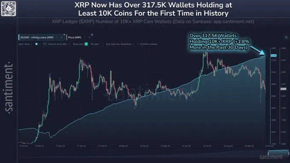 • تعداد آدرس‌هایی که بیش از ۱۰ هزار توکن XRP نگهداری می‌کنند، به رکورد تاریخی خود رسیده است.