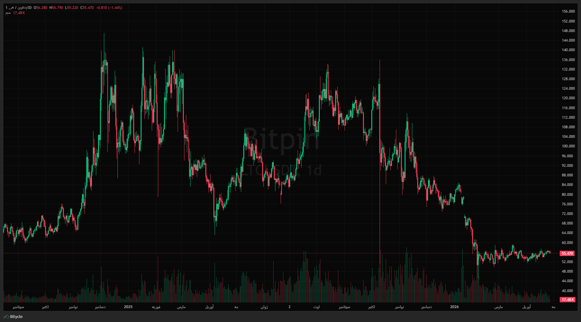 در زمان نگارش این خبر، قیمت لایت کوین حدود ۵۵٫۹۲ دلار است و تغییر قابل توجهی در ۲۴ ساعت گذشته نداشته است. علیرغم ترس، عدم قطعیت و تردید (FUD) پیرامون خبر این حمله منع سرویس، این آلت کوین در طول روز حدود ۱٫۲ درصد کاهش یافت.