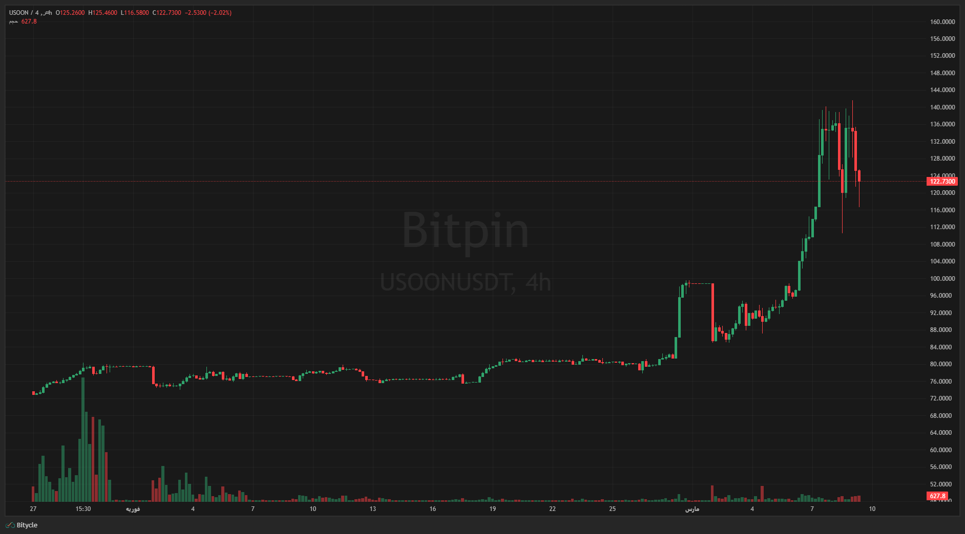 بازار فیوچرز نفت خام وست تگزاس اینترمدیت (WTI) در آخرین معاملات ۱۲ درصد رشد کرد و به ۱۰۲٫۲۸ دلار در هر بشکه رسید. این نخستین بار از اواسط ۲۰۲۲ (تابستان ۱۴۰۱) است که قیمت از مرز ۱۰۰ دلار عبور میکند؛ زمانی که حمله روسیه به اوکراین بازارهای جهانی انرژی را متلاطم کرد. نفت وست تگزاس در طول شب تا ۱۱۹ دلار در هر بشکه بالا رفت. شاخص بینالمللی نفت برنت نیز بیش از ۱۲ درصد افزایش یافت و به ۱۰۴٫۷۶ دلار در هر بشکه رسید.