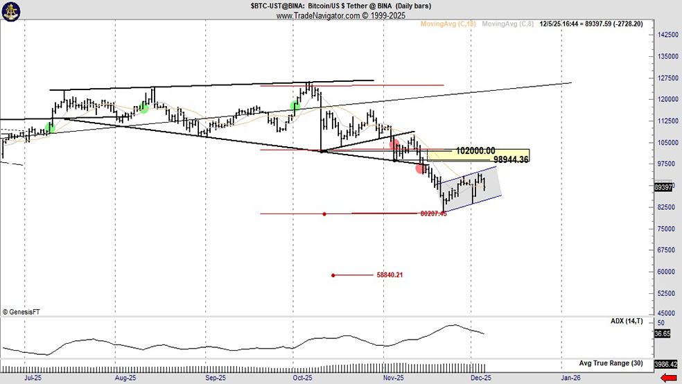 ورود سرمایه از طریق صندوقهای ETF دوباره افزایش یافته و طی هشت روز از ده روز گذشته خالص ورودی مثبت ثبت شده؛ اتفاقی که نقطه مقابل عملکرد ضعیف آنها در ماه نوامبر است. با این حال، تحلیلگر تایتنآوکریپتو (Titan of Crypto) هشدار داده در صورت ازدسترفتن حمایت ۸۹,۰۰۰ دلار احتمال سقوط کوتاهمدت تا ۸۳,۹۰۰ دلار وجود دارد.