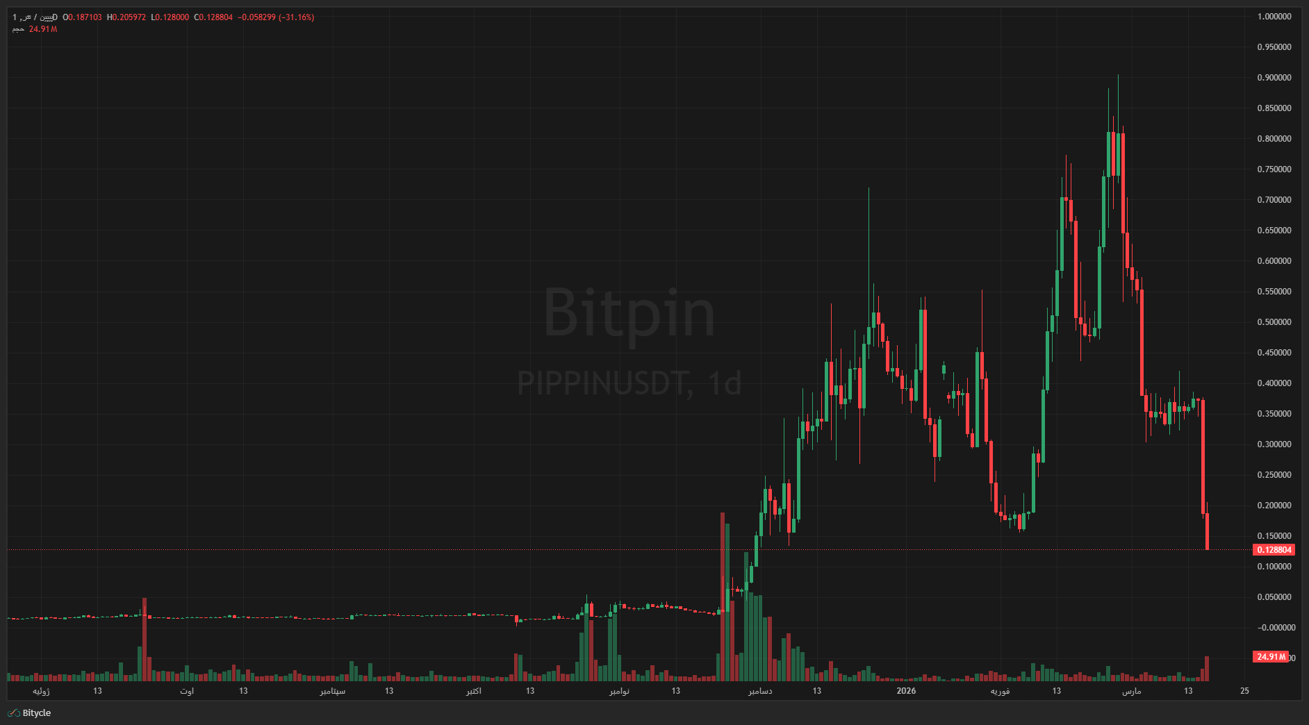 این فروش گسترده باعث شد قیمت پیپین از حدود ۰٫۳۵ دلار به کمتر از ۰٫۱۵ دلار در طول یک روز سقوط کند. بیت پین تأیید کرد که پیپین در بازه ۲۴ ساعته نزدیک به ۶۰ درصد افت داشته و حدود ۲۰۰ میلیون دلار از ارزش بازار آن از بین رفته است. این سقوط باعث شد توکن بهطور کامل از فهرست ۲۰۰ دارایی برتر کریپتو خارج شود. حجم معاملات در کوینمارکتکپ (CoinMarketCap) در حال حاضر نزدیک به ۸۰ میلیون دلار است که نزدیک به ۸۰ درصد افزایش یافته و مقیاس و سرعت این موج فروش را نشان میدهد.