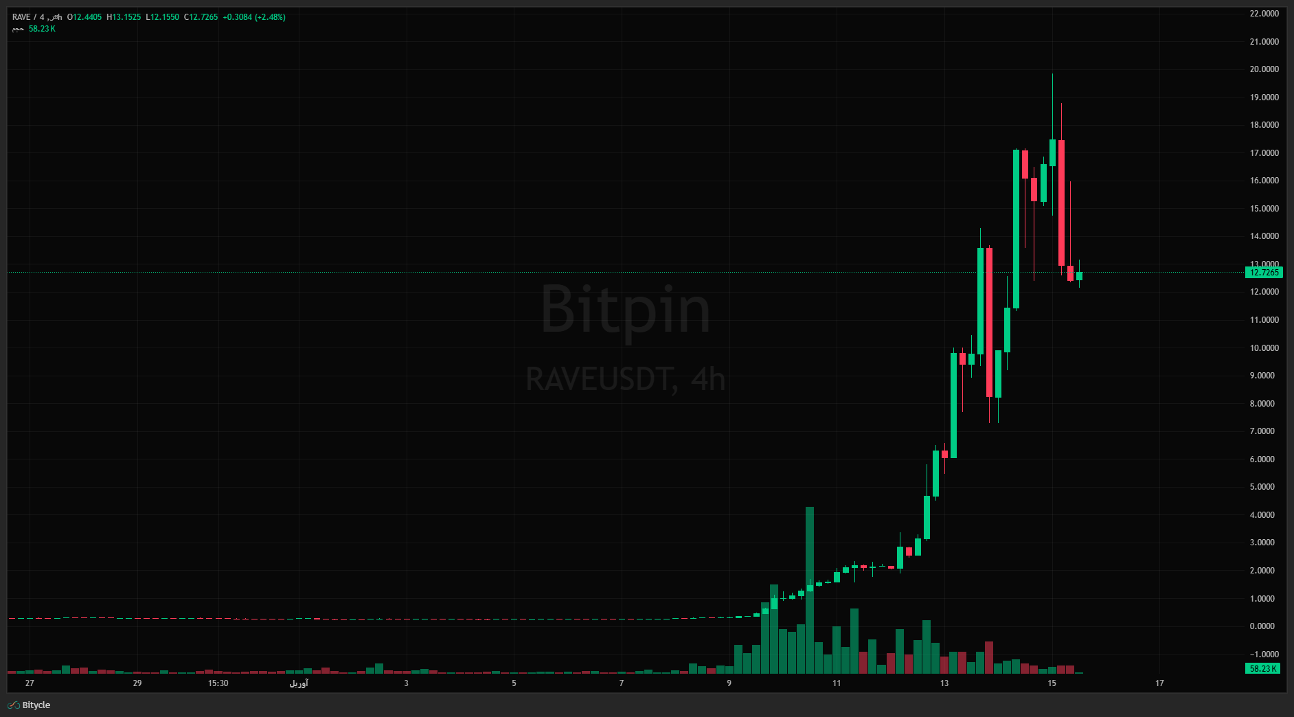طبق کوینگکو، قیمت RAVE در ۲۴ ساعت گذشته ۶۷٫۵ درصد افزایش یافت و به ۱۷٫۷۰ دلار رسید. حرکتی با این بزرگی در هر جهتی، پوزیشنهای اهرمی در سمت بازنده را به اجبار میبندد. با نزدیک به ۳۰٬۰۰۰ رویداد لیکوییدیشن، بسته شدنهای اجباری گسترده بودند و در تعداد محدودی از حسابهای بزرگ متمرکز نشده بودند.