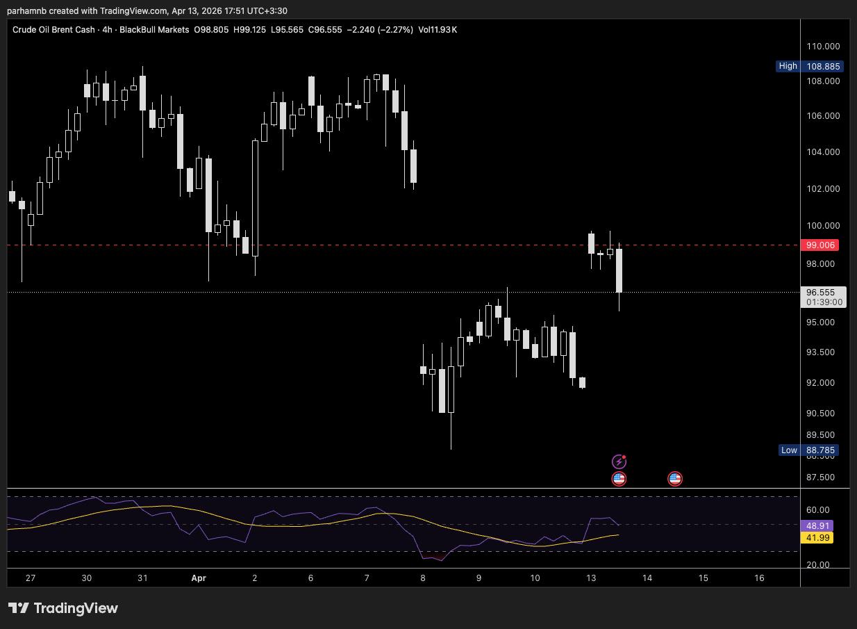 نفت برنت با جهشی خیرهکننده دوباره مرز ۱۰۰ دلار را رد کرد و به ۱۰۲.۲۵ دلار رسید و اکنون حوالی ۹۶ دلار معامله میشود. اگرچه سنتکام (CENTCOM) اعلام کرده که محاصره صرفاً محدود به بنادر ایران است و شامل کل تنگهی هرمز نمیشود، اما بازارها به شدت نگران زنجیرهی تأمین هستند.