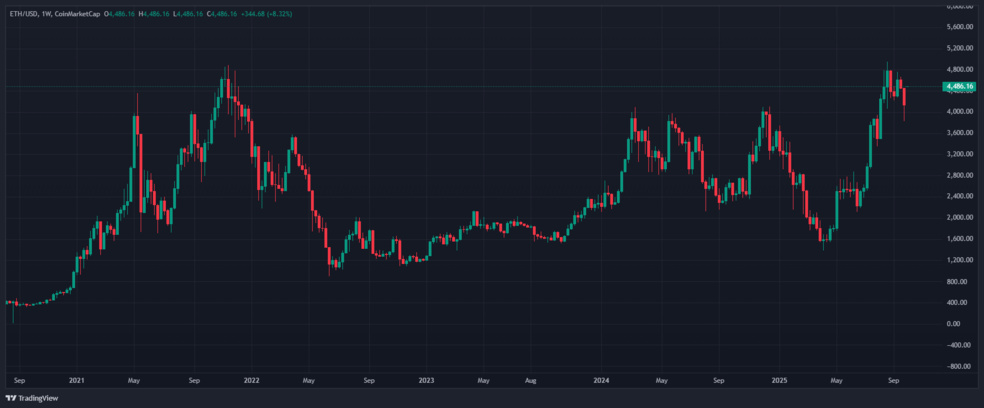 قیمت اتریوم در محدوده 4,500 دلار نوسان میکند؛ رشدی آهسته اما باثبات دارد و نقش پلتفرم اصلی در دیفای را ایفا میکند.