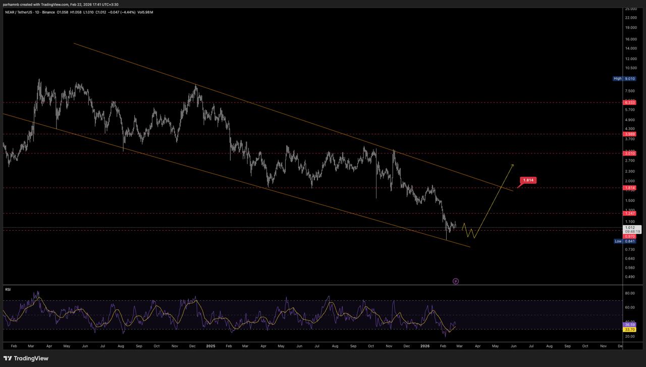 محدودهی ۱.۸ دلار مقاومت کلیدی پیش روی NEAR است. در صورت شکست و تثبیت بالای این سطح، اهداف بعدی میتوانند محدودههای ۳ دلار، ۴ دلار و ۶.۳۳ دلار باشند. اما اگر شکست ناموفق باشد، احتمال بازگشت مجدد به کف کانال وجود دارد.