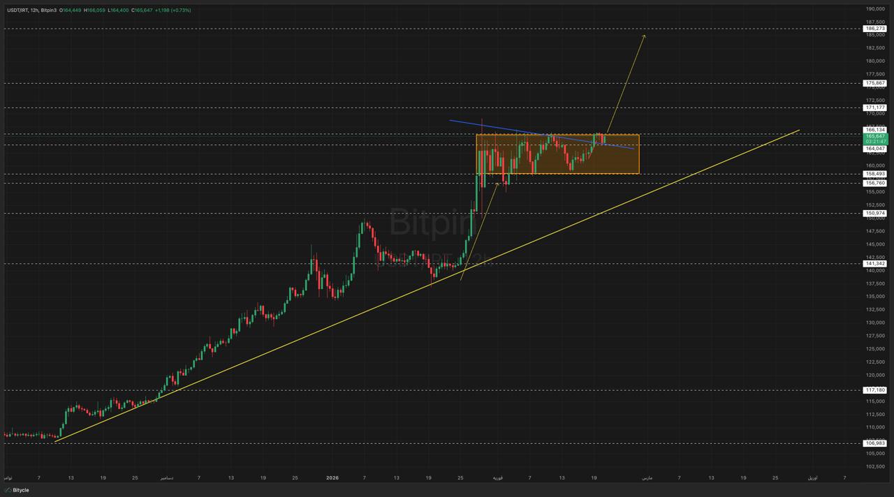 در مقابل، اگر مذاکرات به بنبست برسد یا سطح نااطمینانی سیاسی و اقتصادی افزایش یابد، احتمال هجوم تقاضا به تتر بیشتر میشود. از منظر تکنیکال، شکست سقف ۱۶۶ هزار تومان میتواند تکمیل الگوی کلاسیک مشخص شده در نمودار را تأیید کند.