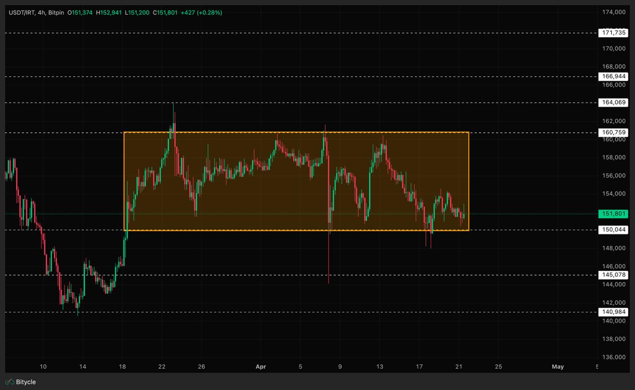 محدوده ۱۶۰ تا ۱۶۴ هزار تومان مهم‌ترین زون مقاومتی تتر محسوب می‌شود و برای اینکه روند دوباره صعودی تلقی شود، قیمت باید این محدوده را با قدرت بشکند و بالای آن تثبیت دهد. تا قبل از این اتفاق، هر رشد قیمتی می‌تواند صرفاً یک بازگشت کوتاه‌مدت در دل ساختار اصلاحی فعلی باشد. اما اگر این مقاومت شکسته شود، آن‌وقت بازار می‌تواند به سمت اهداف جدیدتر و سقف‌های بالاتر حرکت کند.