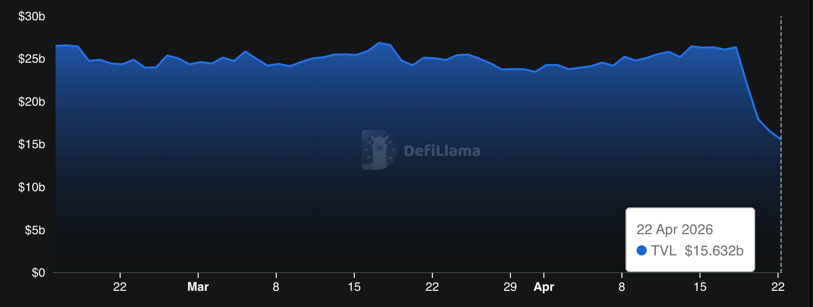 حادثه کلپدائو اعتماد بازار را در سراسر بخش امور مالی غیرمتمرکز (DeFi) متزلزل کرده است. دادههای دیفایلاما (DeFiLlama) نشان میدهد که ارزش کل قفلشده آوه از ۲۶٫۳۹ میلیارد دلار به ۱۵٫۶ میلیارد دلار کاهش یافته که نشاندهنده افتی بیش از ۱۰ میلیارد دلار است.