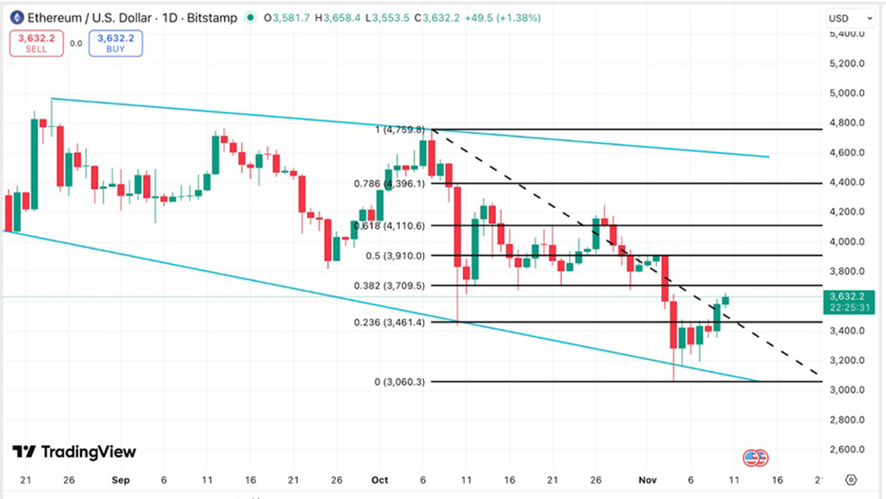 در حال حاضر، اتریوم برای عبور از مقاومت‌های ۳۷۰۹ و ۳۹۱۰ دلار تلاش می‌کند. سطح ۳۹۱۰ دلار مانع قوی‌تری محسوب می‌شود و در صورت شکست آن، احتمال رسیدن قیمت به ۴۱۱۰ دلار وجود دارد، اما نبود حمایت نهنگ‌ها می‌تواند این حرکت را ناپایدار کند.