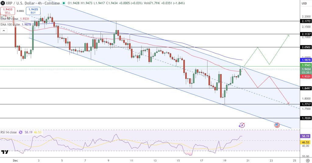 از نظر نموداری، قیمت XRP در حال نوسان در کانالی نزولی است که از اوایل دسامبر صعود را محدود کرده است. بازگشت از ۱.۸۵ دلار از نظر تکنیکال سازنده بود، با کندلهای صعودی و RSI که به سمت ۵۸ بازیابی شد و نشاندهندهی کاهش مومنتوم نزولی است.