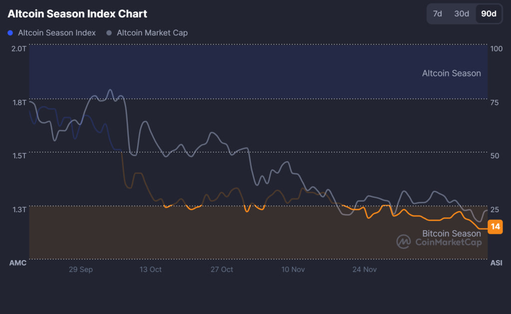 ریزش قیمت ریپل در میان چرخش گستردهتری از داراییهای کریپتو با ریسک بالاتر اتفاق افتاده است. اتریوم، سولانا و کاردانو همگی ریزشهای هفتگی شدیدتری را ثبت کردهاند، در حالی که شاخص آلتسیزن در سطح بسیار پایین ۱۴ باقی مانده است؛ این پسزمینه بیشتر نشاندهندهی احتیاط در پوزیشنگیری است تا تسلیم کامل.