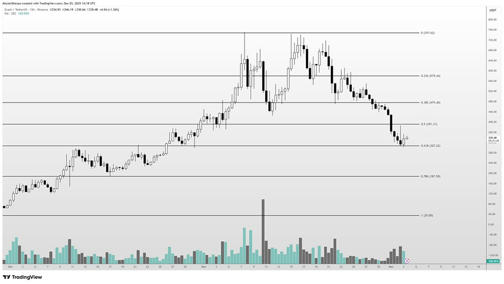 آلتکوین شرپا (Altcoin Sherpa) معتقد است ساختار فعلی زیکش برای معاملهگران سوئینگ یک فرصت مناسب ایجاد کرده است. او تأکید میکند که برخورد قیمت با سطح ۰٫۶۱۸ فیبوناچی معمولاً توجه معاملهگرانی را جلب میکند که به دنبال بازگشتهای ناشی از فروش بیشازحد هستند.