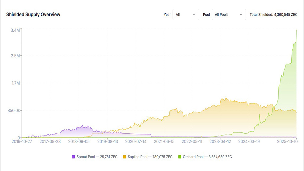 افزایش تقاضا برای این رمزارز با رشد ۲۶.۳۶ درصدی موجودی قفل‌شده در استخر خصوصی اورچارد (Orchard Shielded Pool) همراه بوده که از توجه کاربران به حریم خصوصی حکایت دارد. این روند در پی نگرانی‌های اخیر درباره نظارت بر تراکنش‌های رمزارزی شدت گرفته است.