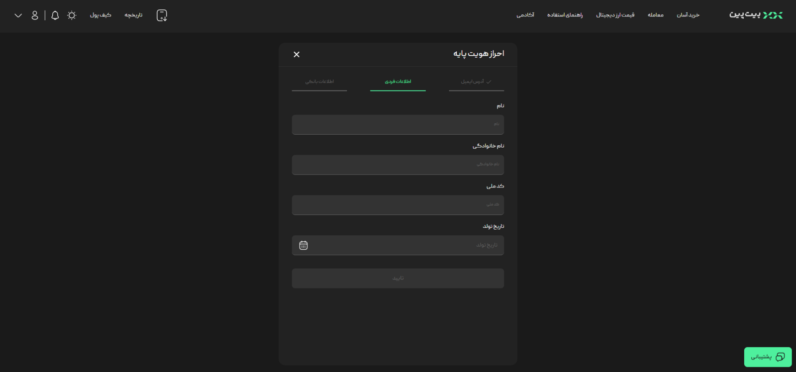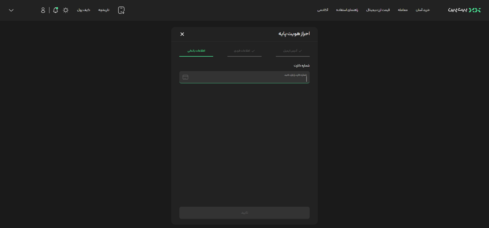 با زدن دکمه تایید، احراز هویت سطح پایه شما انجام شده و میتوانید در ادامه برای استفاده از همه امکانات بیتپین، حساب کاربری خود را به سطح پیشرفته ارتقا دهید.